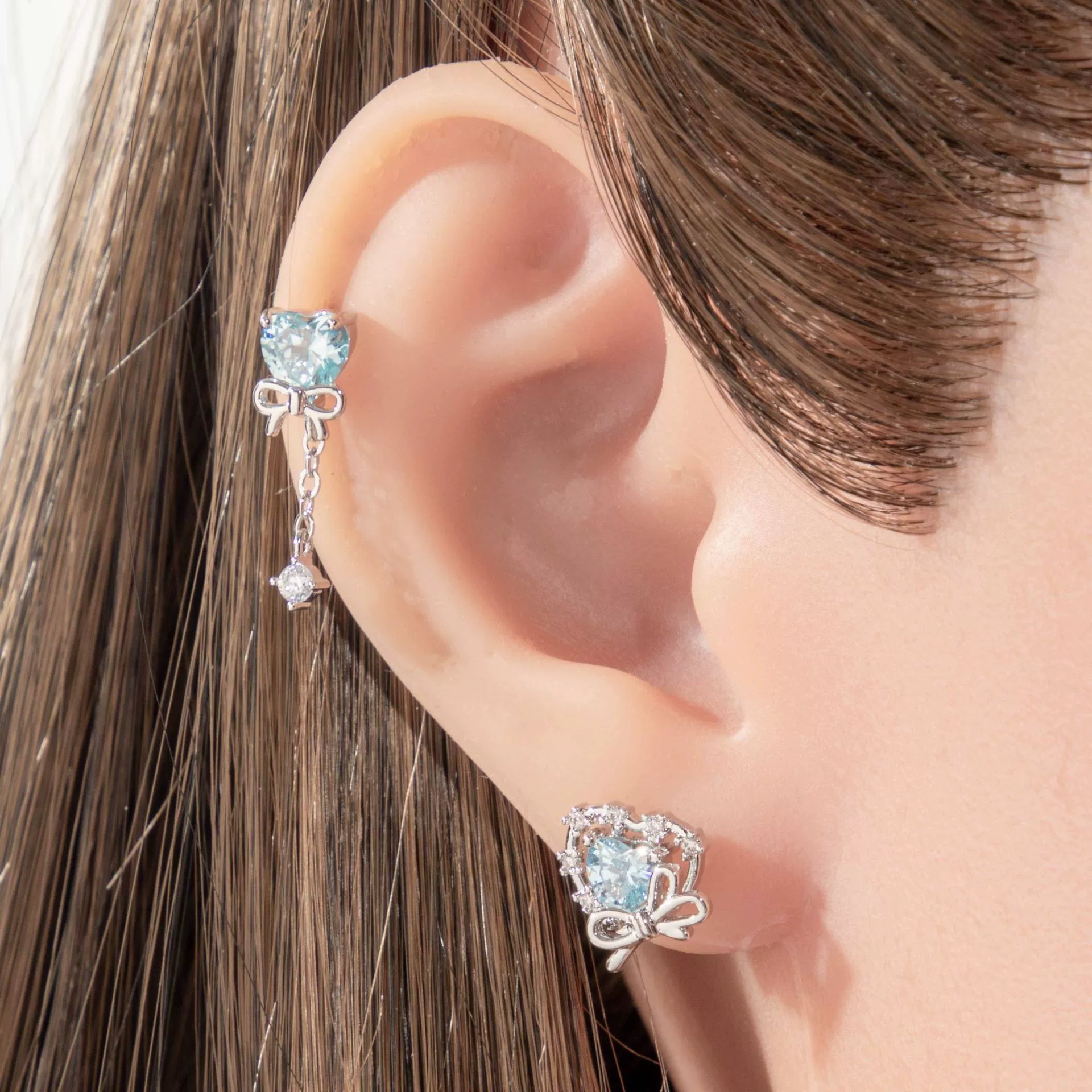 Cartilage Piercing Ear Bone Nail Metal Heart Shape Zircon Diamond Unisex