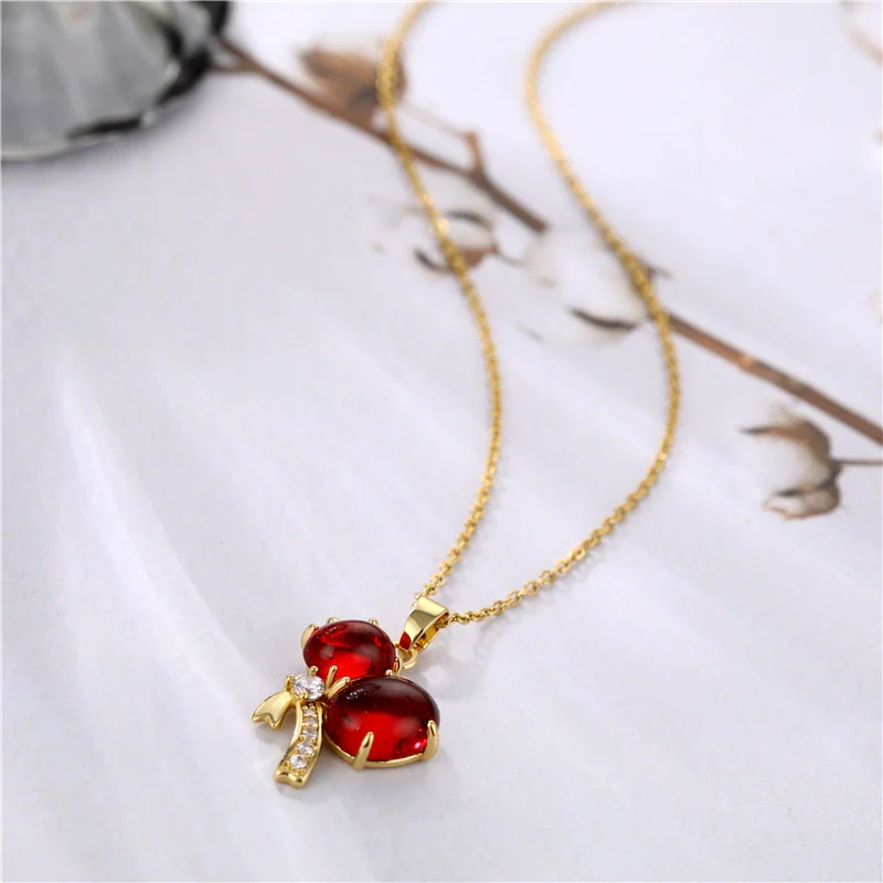 Jewelry Lucky Red Agate Gourd Pendant With Diamonds Titanium Steel Necklace For Women