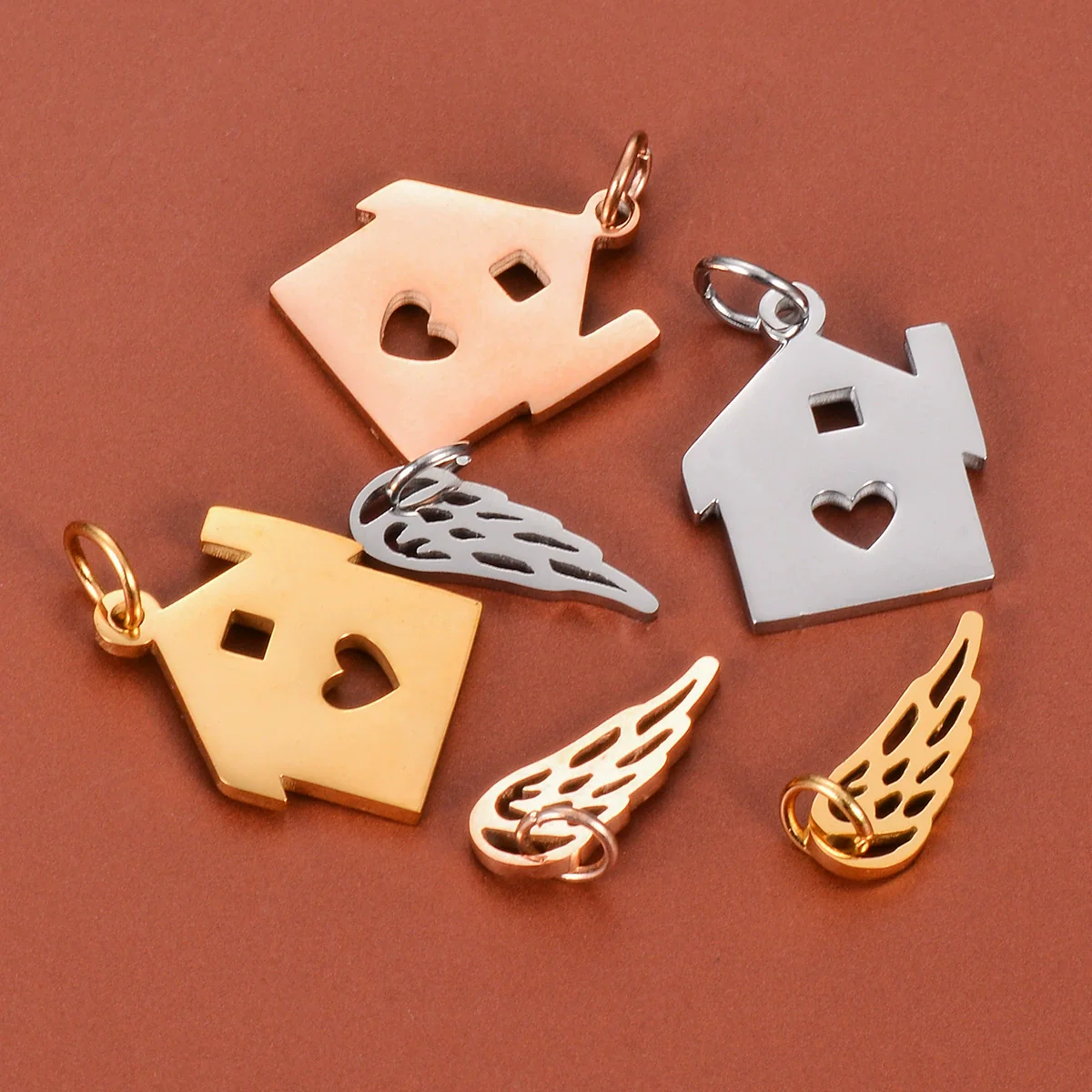 Jewelry Pendant Stainless Steel Heart House Cut Out Wings Polished Electroplated