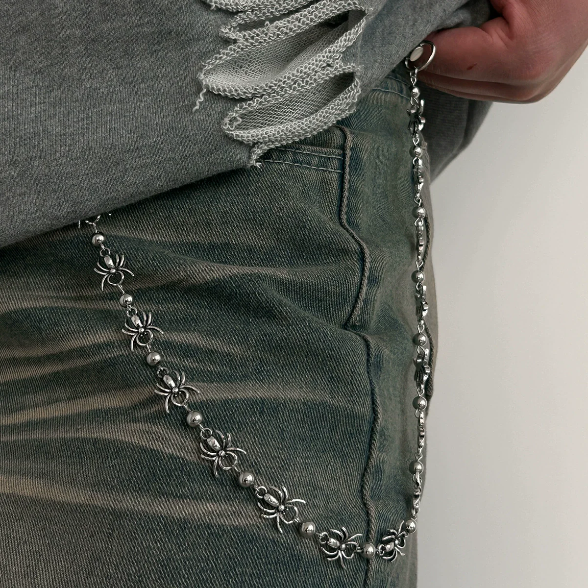 Men's Hip Hop Punk Metal Waist Chain With Dark Spider Design