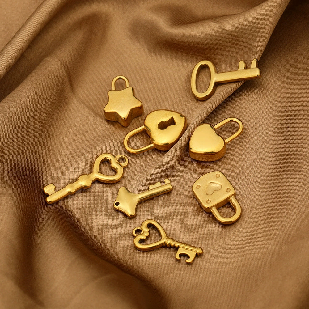 Metal Hollow Love Key Peach Heart Concentric Padlock Pendant Couple Necklace Diy Jewelry Accessories Electroplated