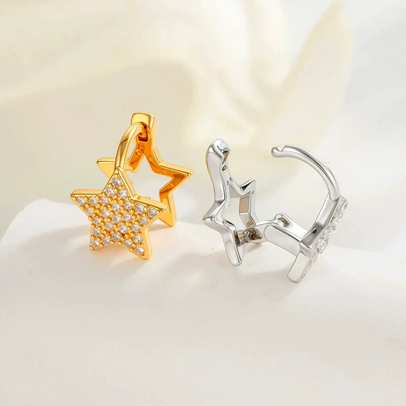 Metal Microencrusted Zircon Fivepointed Star Geometric Sweet Style Electroplated Women's Earrings