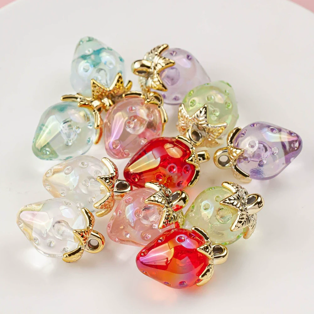 Plated Resin And Plastic Strawberry Hanging Hole Jewelry Accessories For Mobile Phone Chain And Key Chain