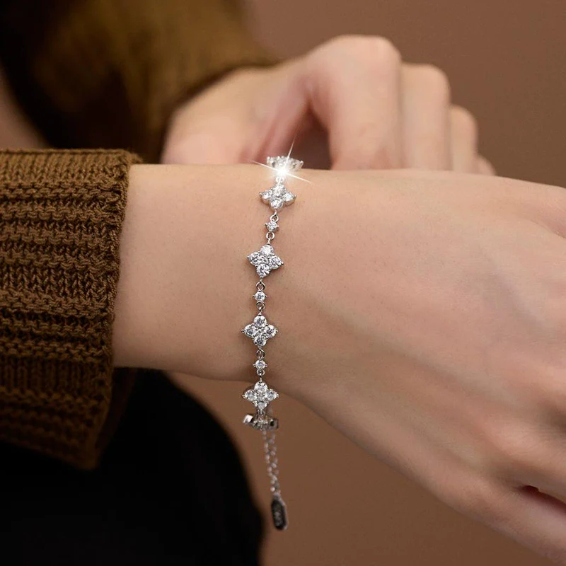 S925 Sterling Silver Moissanite Geometric Four Leaf Clover Women's Bracelet Set With Diamonds Fashion