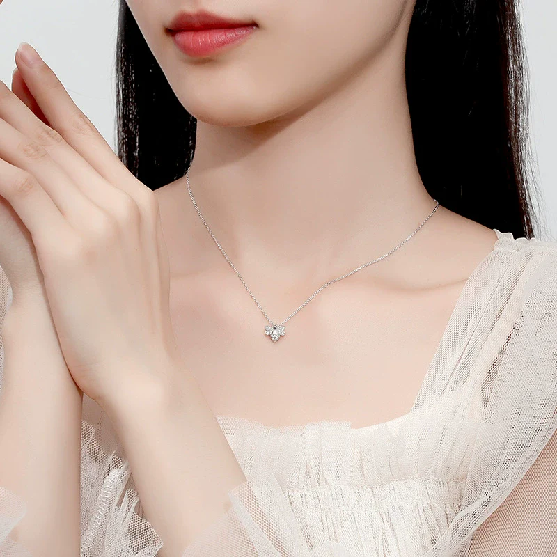 Silver Jewelry Bee Pendant Necklace With Geometric Design And Diamond Treatment For Women