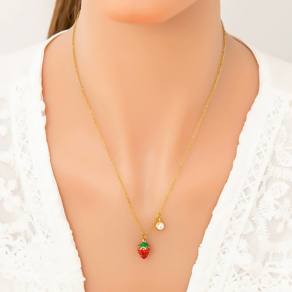 Stainless Steel And Titanium Steel Fruit Pendant Necklace Electroplated With 18K Real Gold For Women