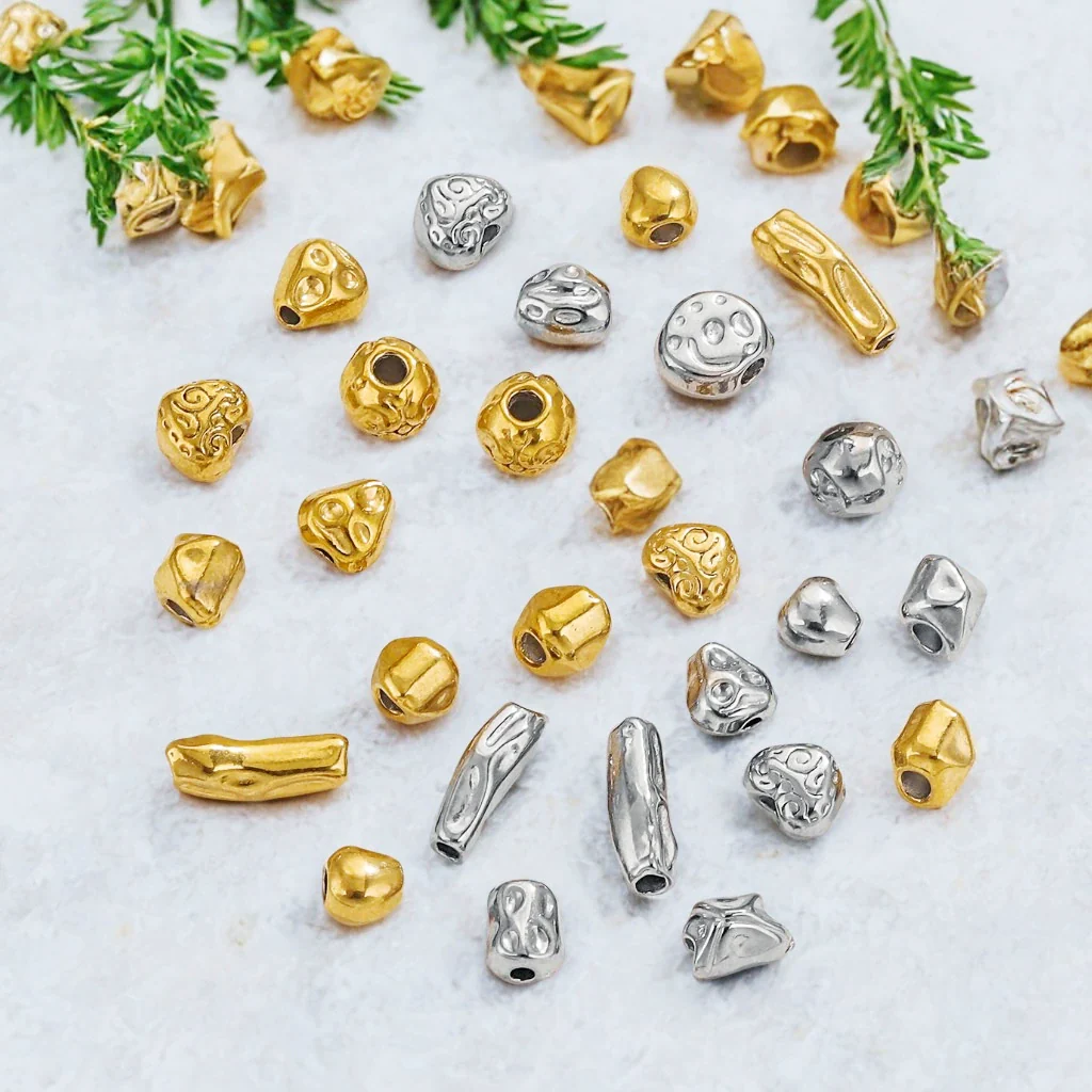 Stainless Steel Baroque Style Round Bead Totem Diy Bracelet Necklace Electroplated Color Preservation Waterproof Accessories