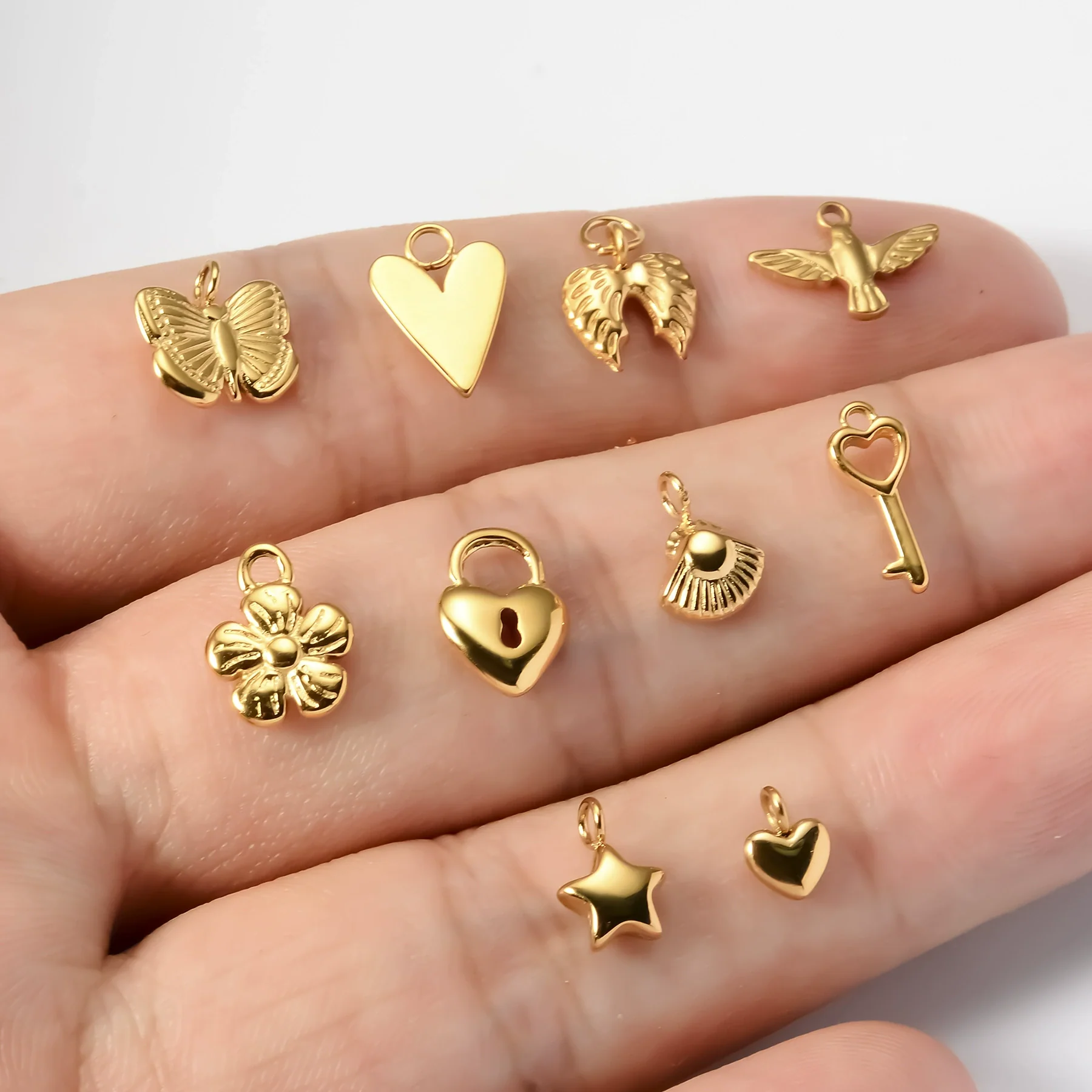 Stainless Steel Electroplated Geometric Love Flower Butterfly Bird Padlock Pendant Diy Bracelet Accessories