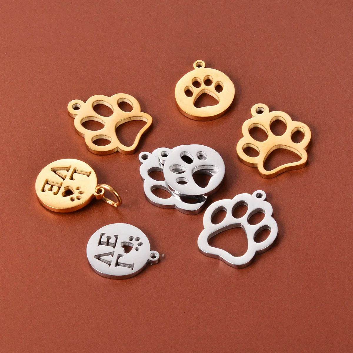 Stainless Steel Jewelry Accessories Pendant With Polished Cut Out Love Letter Cat Paw Dog Paw And Geometric Shape Electroplated