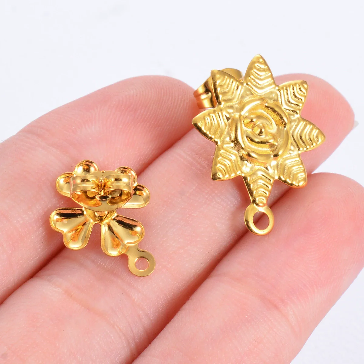 Stainless Steel Leaf Flower Stud Earrings Handmade With Electroplating And Multishape Design