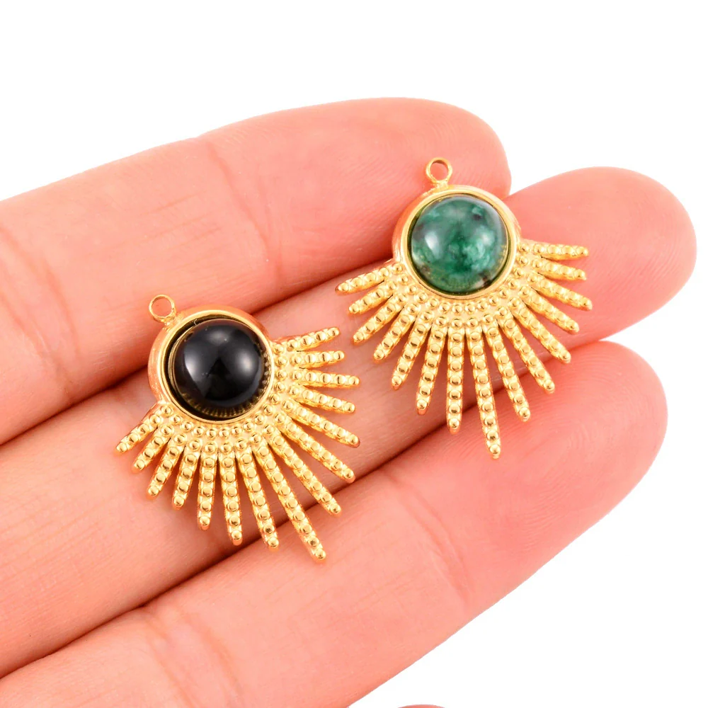 Stainless Steel Sector Pendant Accessories Inlaid Natural Stone Electroplated Radiant Sun Earrings Necklace Diy