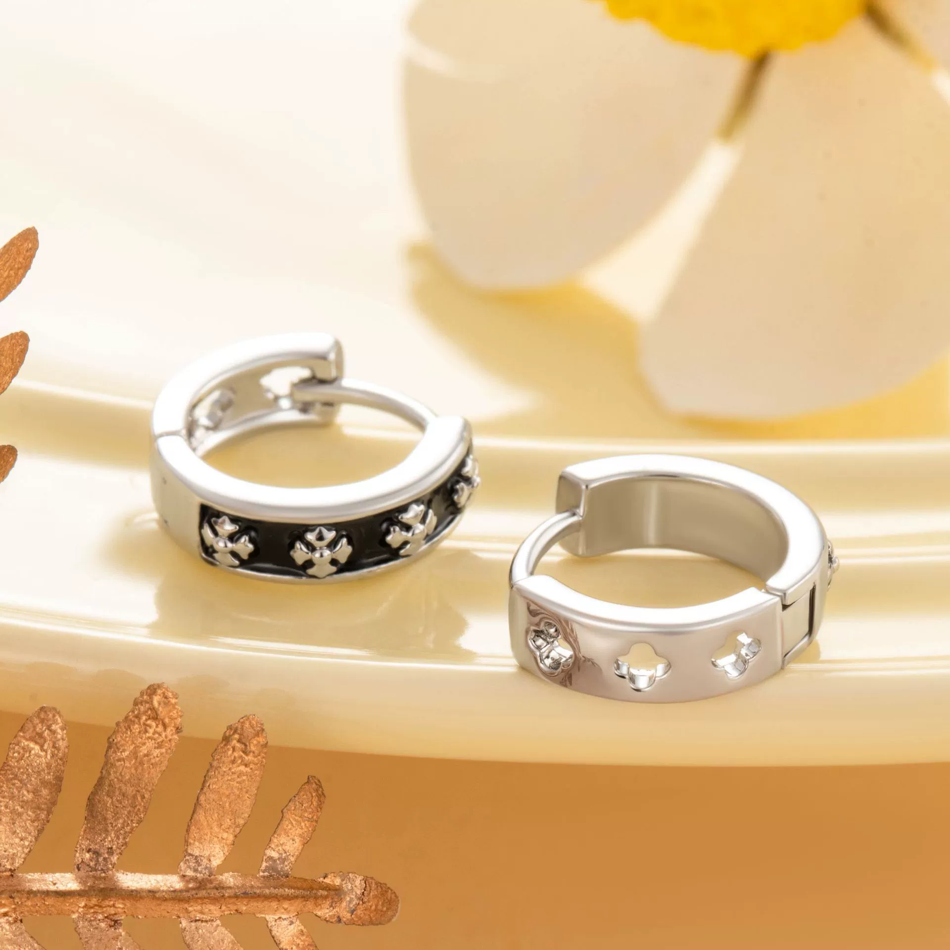 Trendy Cool Black Oil Dropping Cross Couple's Metal Earrings With Geometric Pattern And Electroplating Treatment