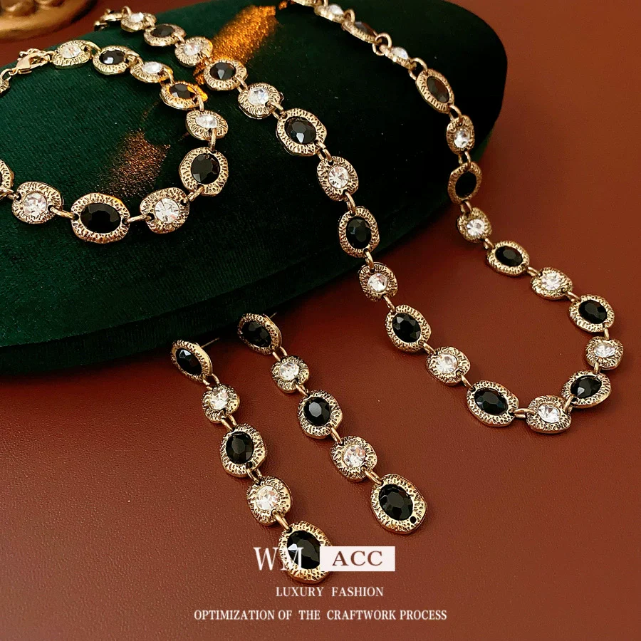 Wholesale Alloy Retro Geometric Oval Tassel Earrings Necklace Bracelet Electroplated