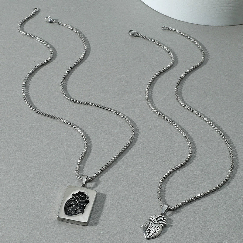 Wholesale Couple Pendant Necklace Alloy Heart Geometric Electroplating Square Pearl Chain