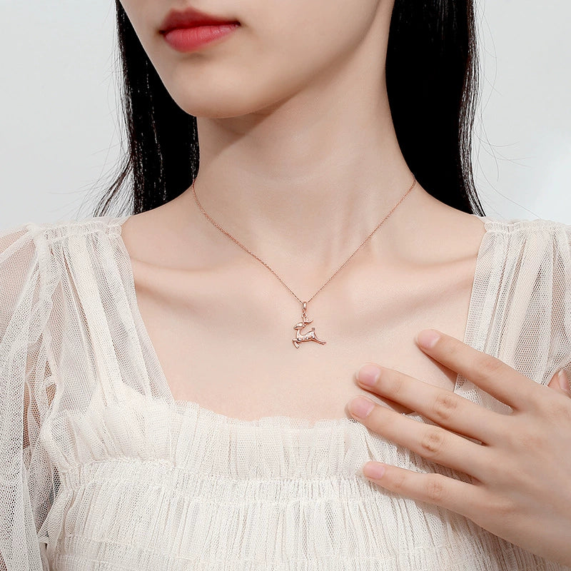 Wholesale Jewelry Deer Shape 925 Silver Necklace With Geometric Pattern For Women