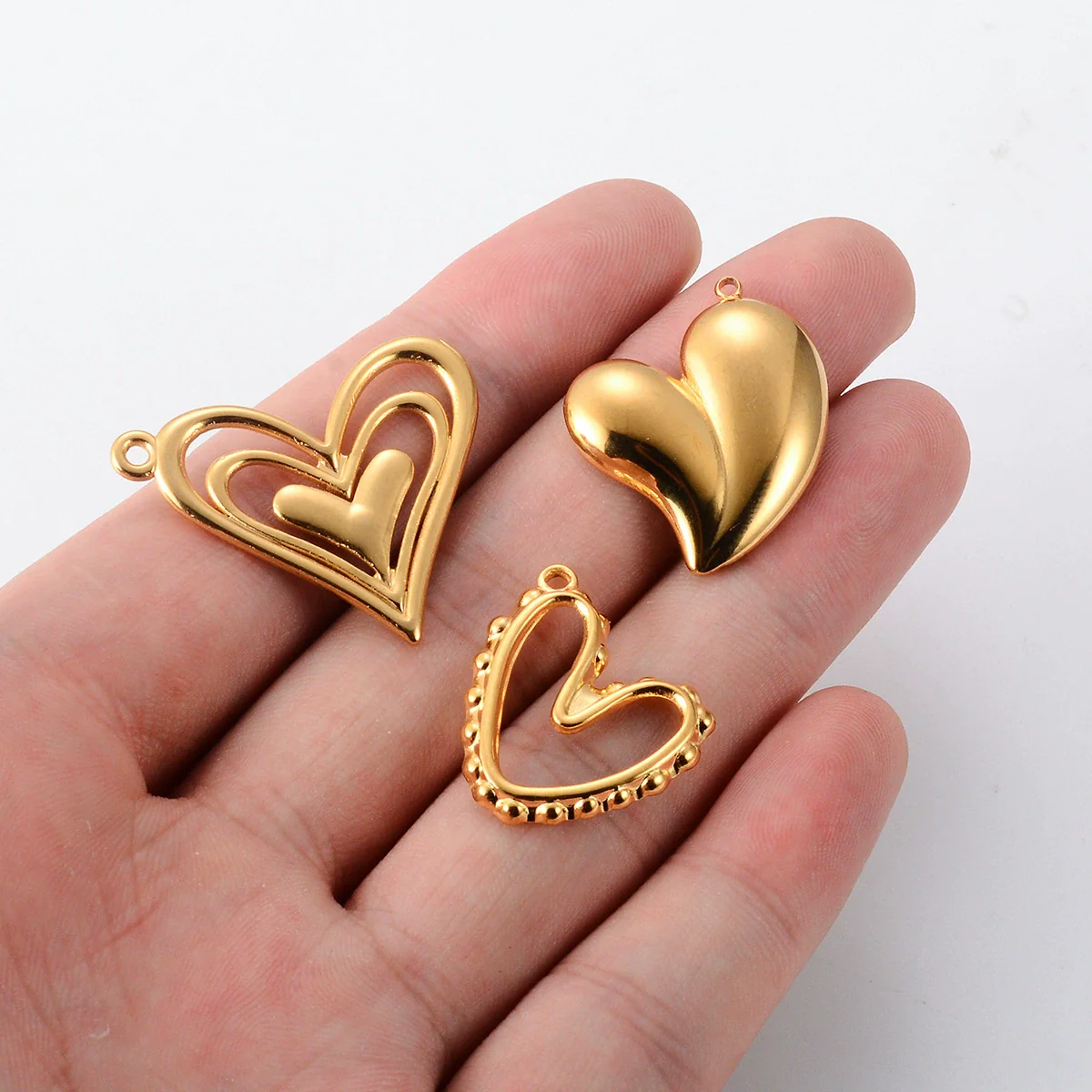 Wholesale Jewelry Retro Art Embossed Hollow Love Stainless Steel Peach Heart Pendant 18K Gold Plated