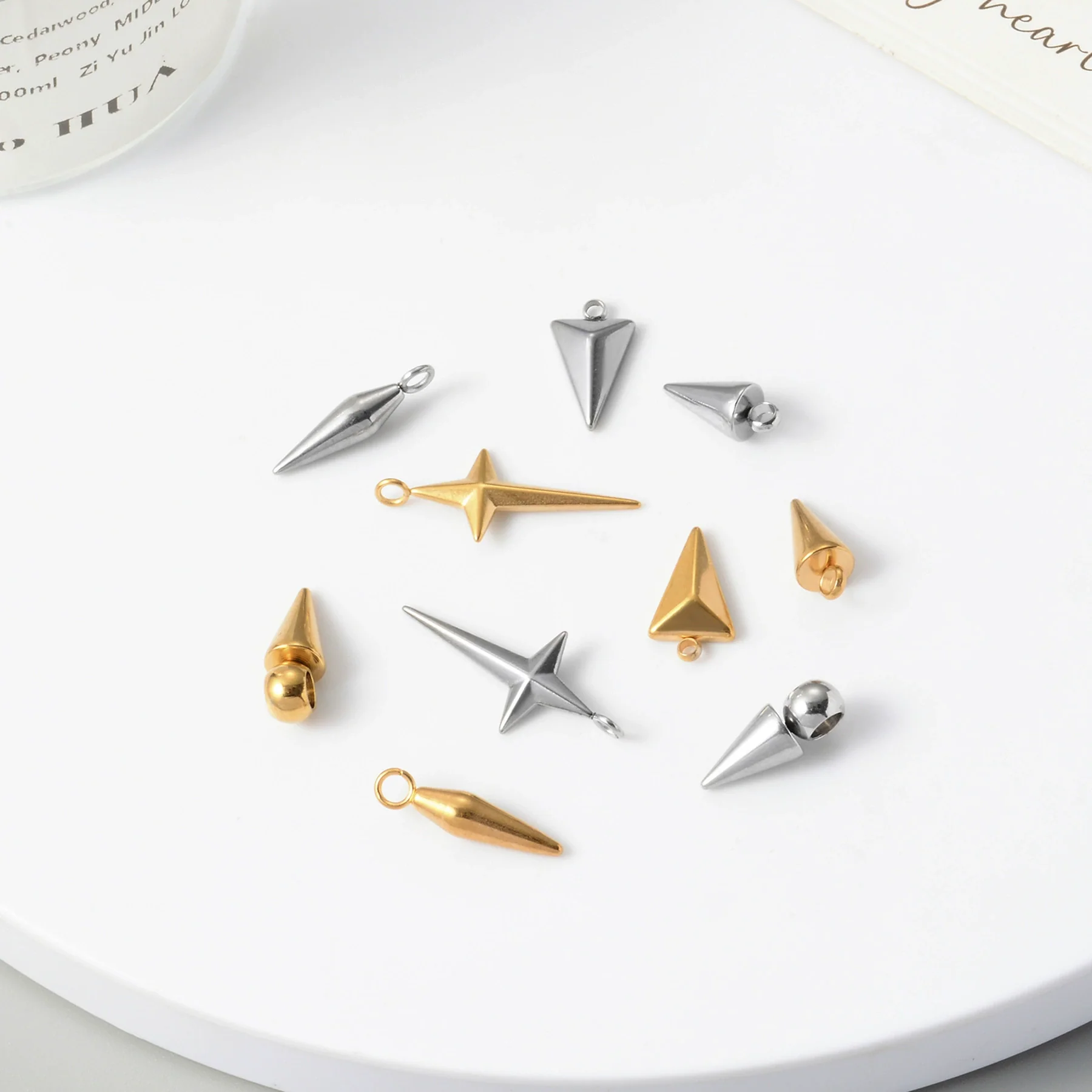 Wholesale Jewelry Stainless Steel Conical Cross Star Pendant Earrings Bracelet Electroplated Geometric Accessories