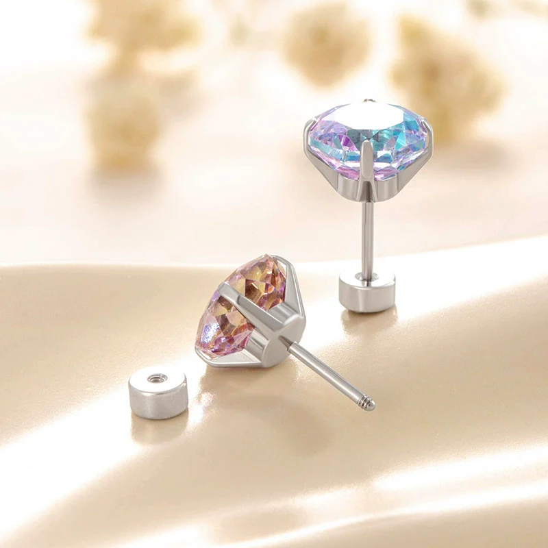 Wholesale Metal Sweet Style Flower Shape Zirconia Inlaid Titanium Steel Ear Nails For Women