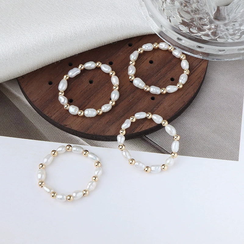 Wholesale Minimalist Women's Natural Freshwater Pearl Ring In 14K Gold With Rice And Water Drop Shapes