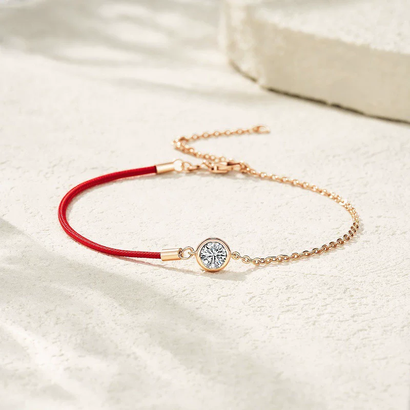 Wholesale Moissanite Inlaid Geometric Style S925 Silver Women's Bubble Red Rope Bracelet