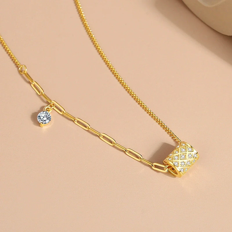 Wholesale Necklace Zircon Roller Pendant 925 Silver Geometric Allmatch Women's Accessories