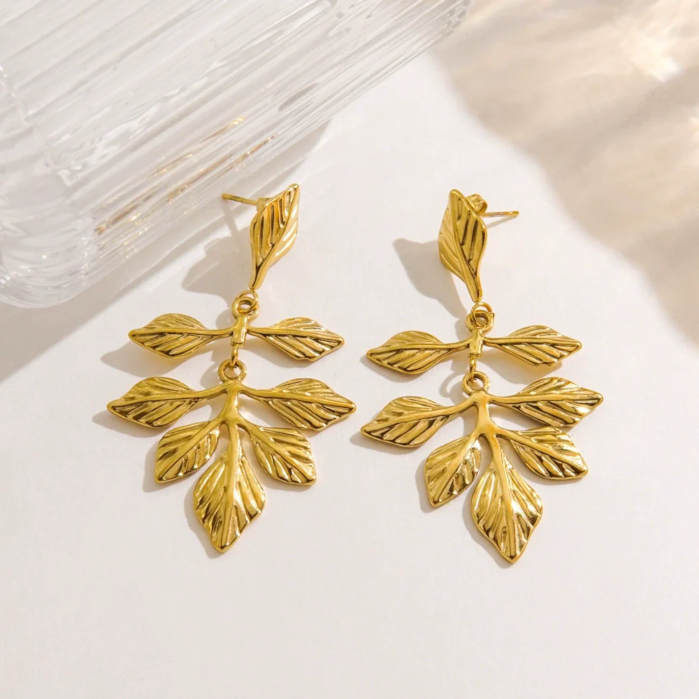 Wholesale Stainless Steel Electroplated Flower Leaf Pendant Earrings Jewelry For Women