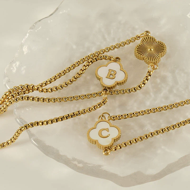 Wholesale 316L Stainless Steel Fourleaf Clover Letter Bracelet Electroplated Unisex
