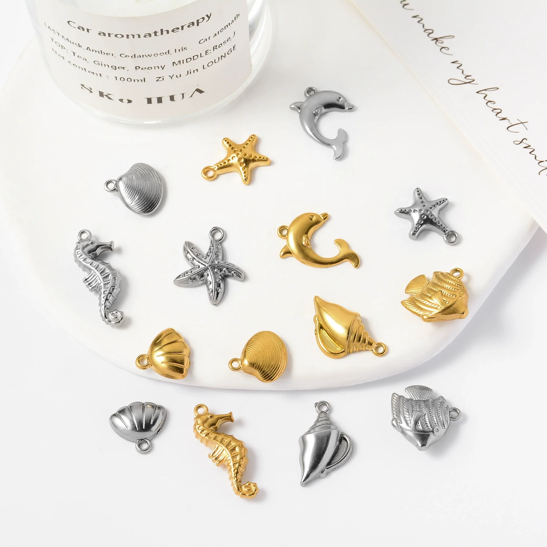 Wholesale Stainless Steel Jewelry With Starfish Dolphin Seahorse Shell Pendant Electroplated Marine Series
