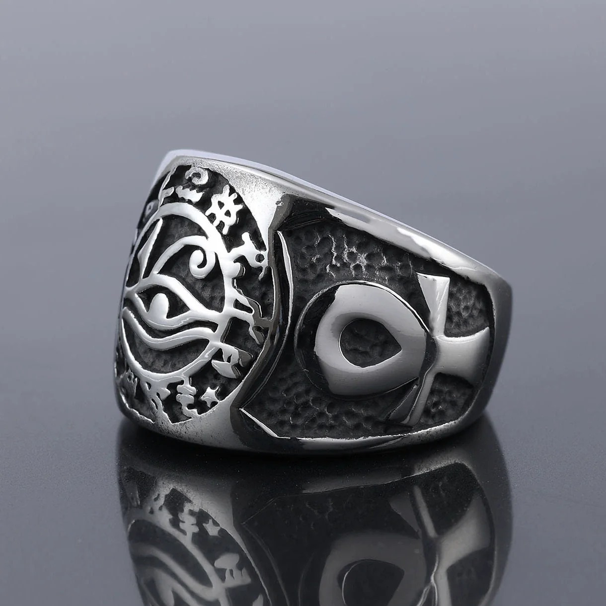 Wholesale Stainless Steel Ring With Cross And Eye Of Horus Pattern Polish Processing Unisex Personality Style