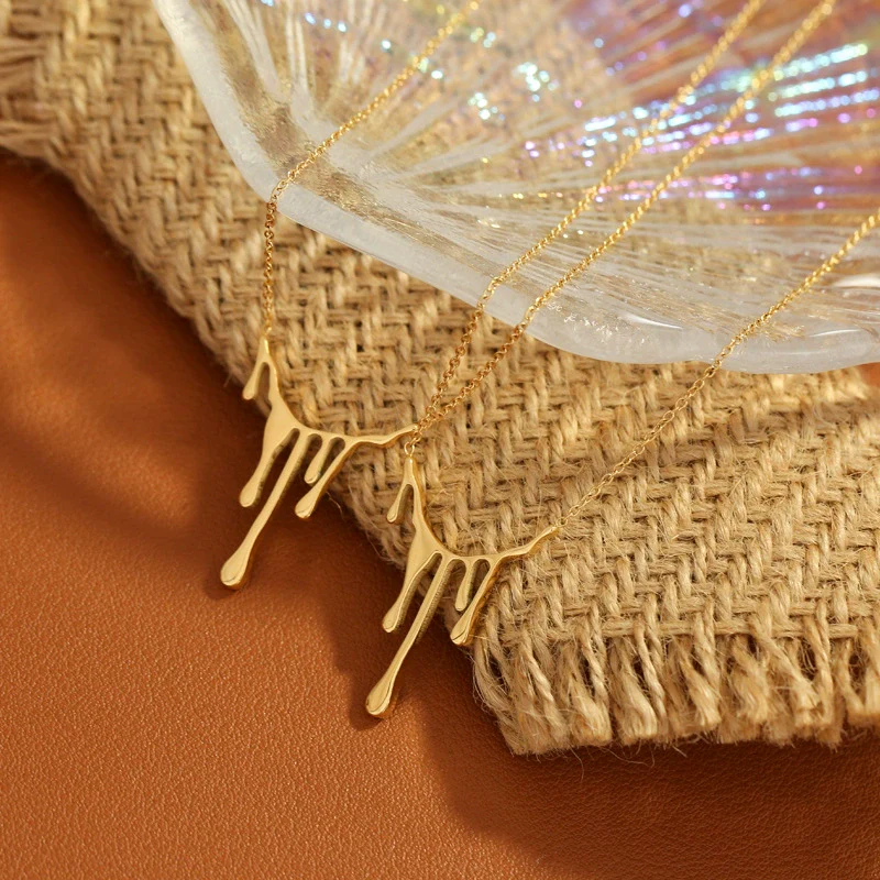 Wholesale Titanium Steel Geometric Irregular Water Drop Pendant Necklace For Women Niche Style 18K Gold Plated