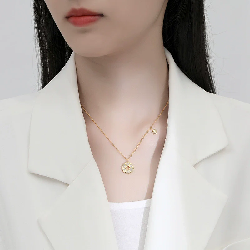 Wholesale Women's 925 Silver Fourleaf Clover Sixpointed Star Diamond Pendant Necklace With Cross Chain