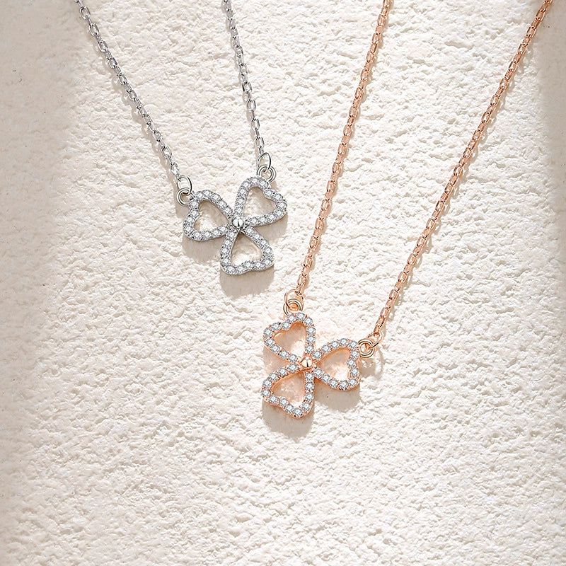 Wholesale Women's S925 Silver Lucky Clover Hollow Heartshaped Diamond Microinlaid Pendant Necklace With Cross Chain