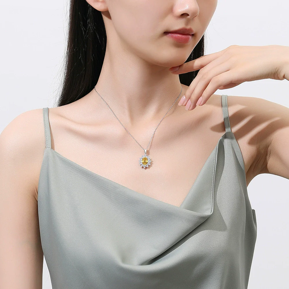 Wholesale Women's S925 Sterling Silver Sunflower Necklace With High Carbon Diamond And Cross Chain Simple Geometric Design