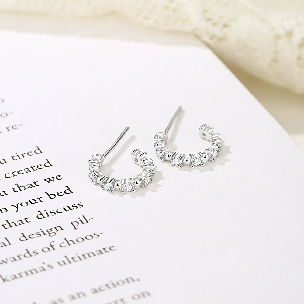 Women's 925 Sterling Silver Electroplated Cshaped Geometric Polka Dot Zircon Row Diamond Earrings