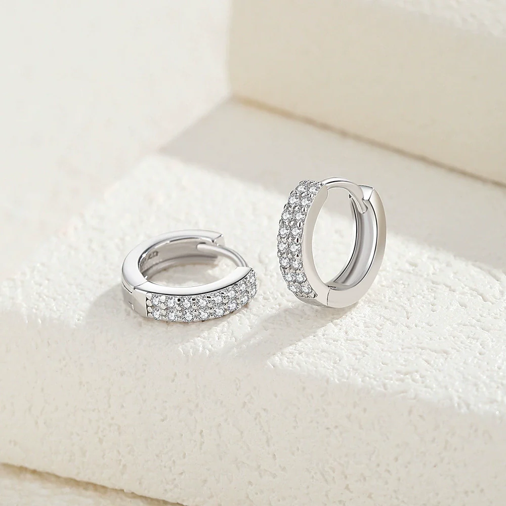 Women's Doublerow Round S925 Sterling Silver Geometric Flash Diamond Earrings With Electroplating