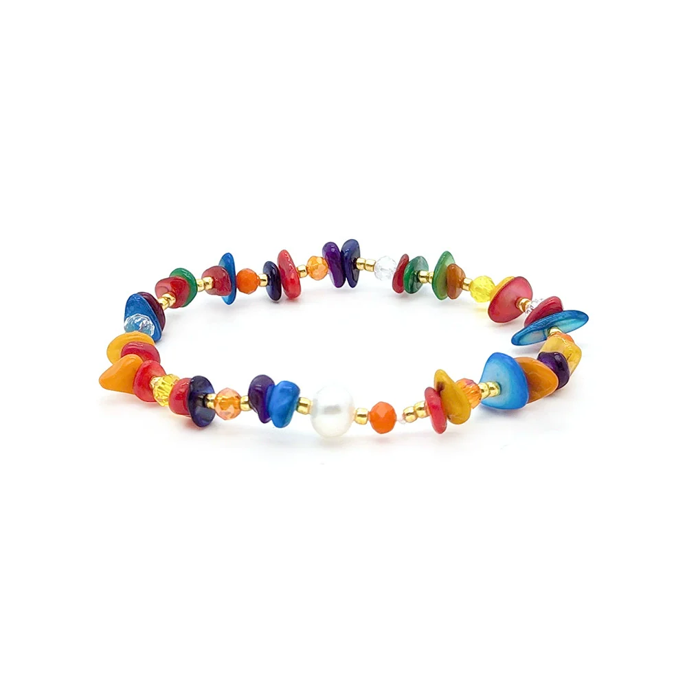 Women's Natural Retro Style Handwoven Glass And Glaze Beaded Bracelet With Geometric Pattern And Colorful Natural Pearl Gravel