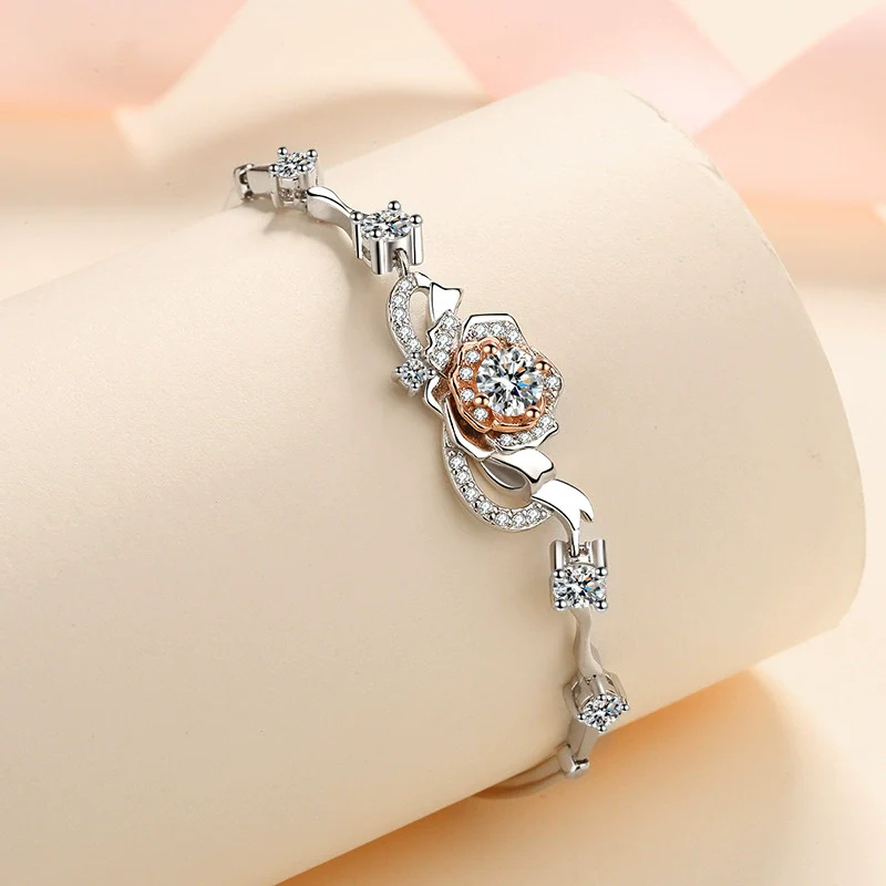 Women's S925 Silver Flower Inlaid Electroplated Bracelet