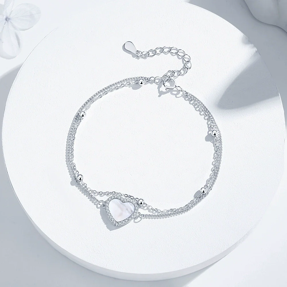 Women's S925 Silver Heartshaped Doublelayer Bracelet With Motherofpearl Electroplated Hand Jewelry